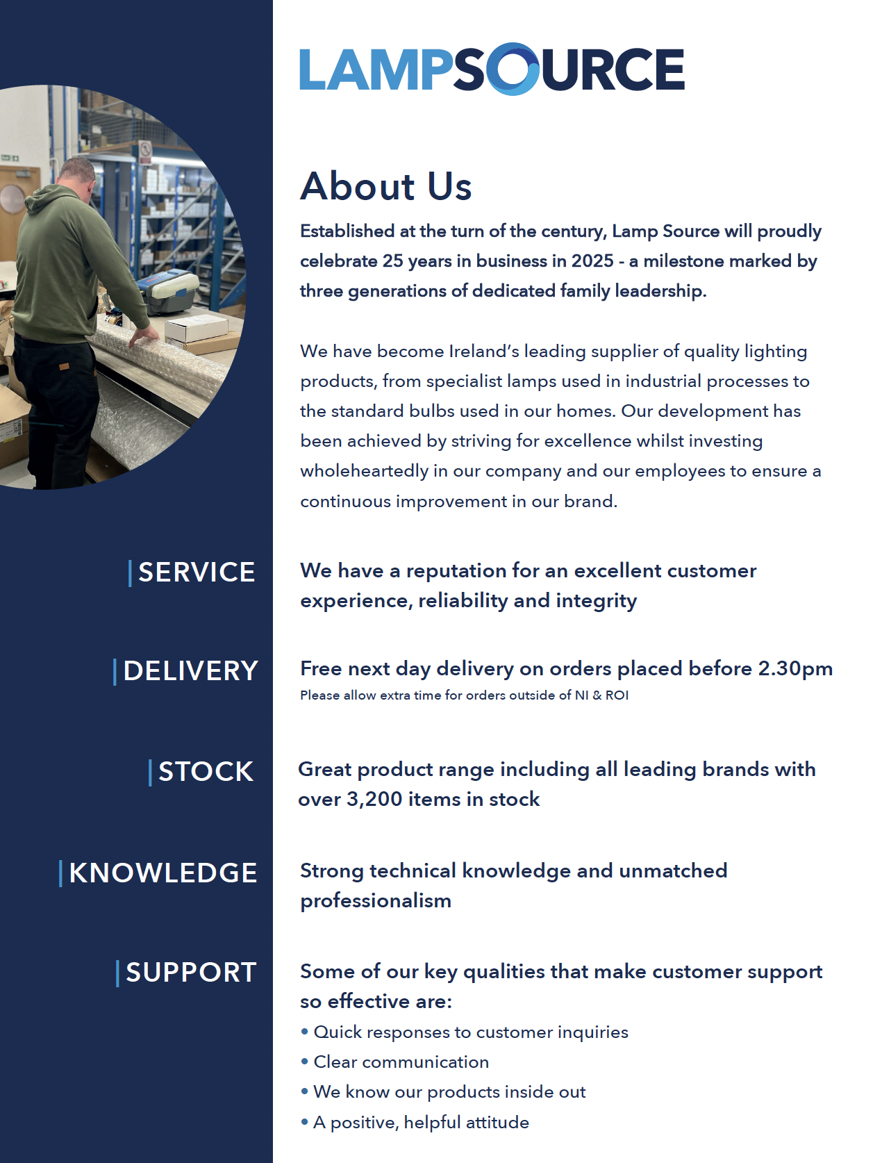 Established at the turn of the century, Lamp Source will proudly celebrate 25 years in business in 2025 - a milestone marked by three generations of dedicated family leadership.