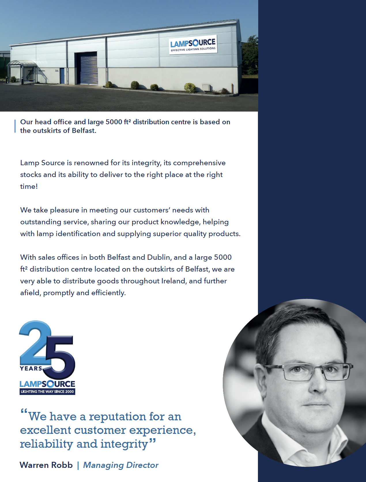 We have become Ireland’s leading supplier of quality lighting products, from specialist lamps used in industrial processes to the standard bulbs used in our homes.